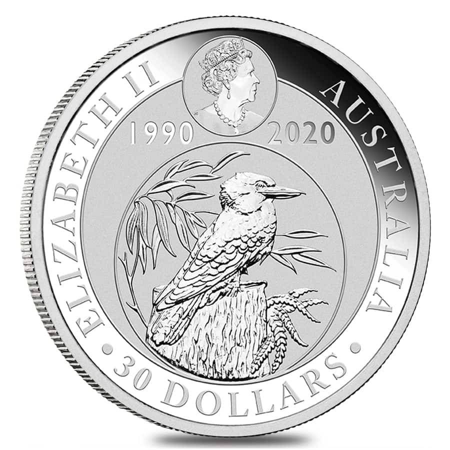 2020 marks a significant milestone for the Perth Mint of Australia in that it is the 30th anniversary of their popular Silver Kookaburra series. The 1 Kilo version of the silver kookaburra is a great way to commemorate the last 30 years of this product, and is the perfect piece to add to any Kookaburra collection or to serve as the start of a new collection..