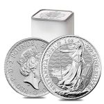 The Britannia Silver | 25pc Set is a masterful celebration of British heritage, brought to life by the Royal Mint. Each coin in this set features the detailed profile of Queen Elizabeth II on the obverse side, symbolising continuity and stability, while the reverse showcases the iconic figure of Britannia. With her trident and shield, Britannia stands as a powerful emblem of Britain’s strength and protection, beautifully depicted with flowing robes and a vigilant stance.